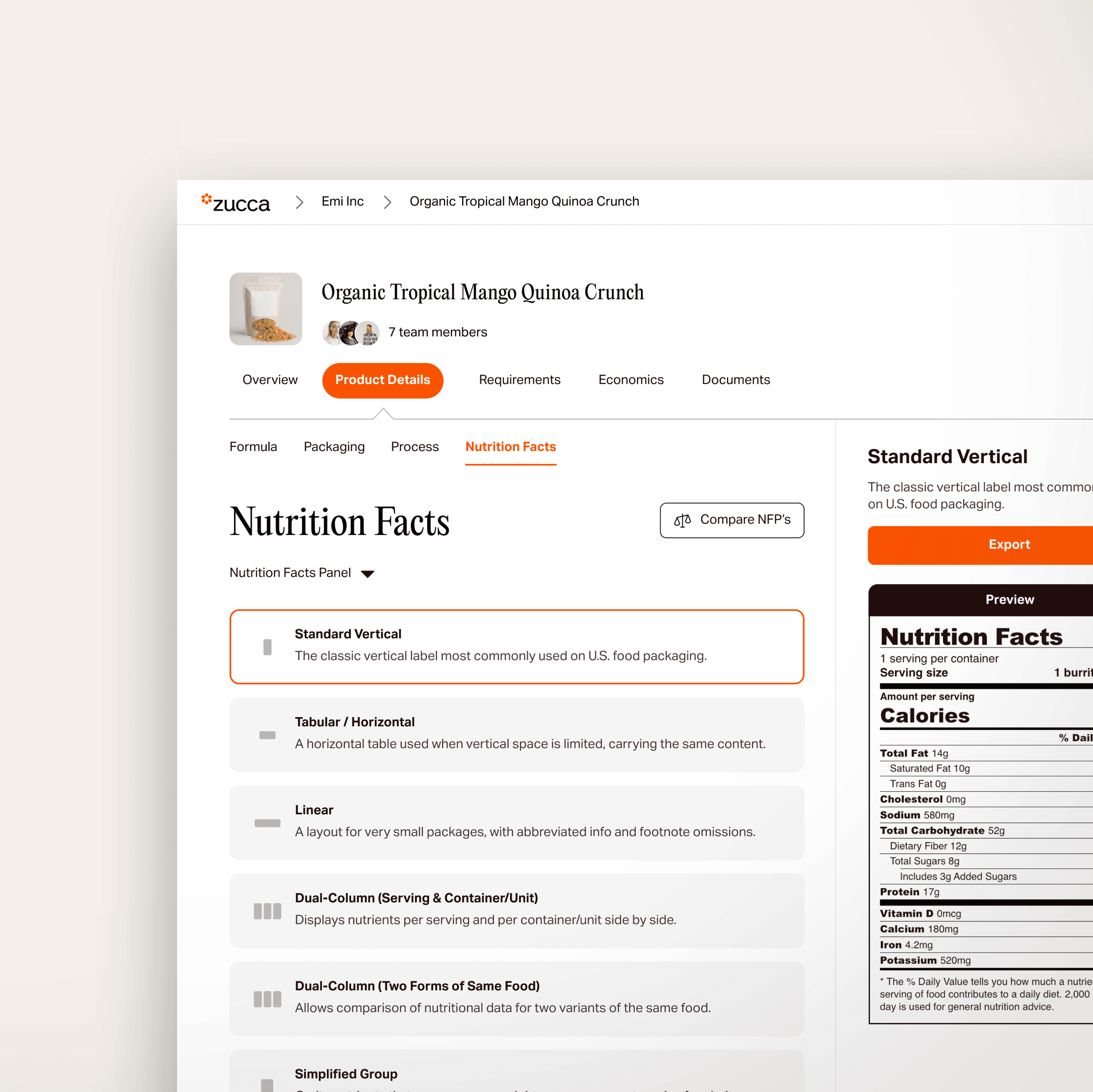 View or export FDA-compliant NFPs that always reflect the latest. Tweak or investigate any detail, simply by asking.