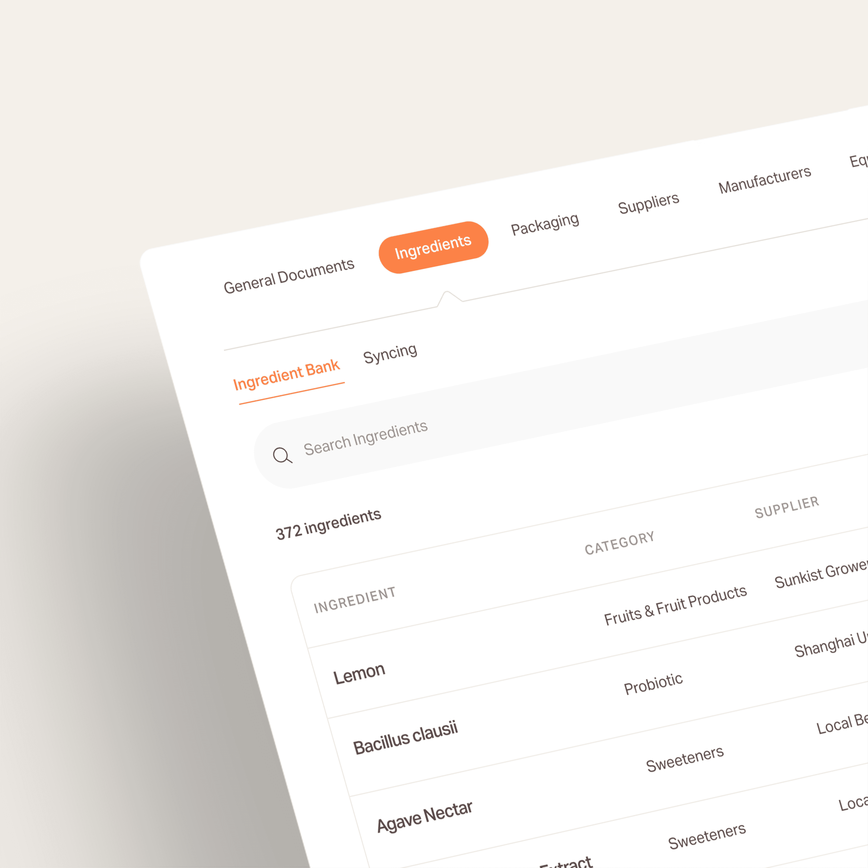Turn CoAs, spec sheets, and certifications into structured data—linked back to sources—so your formulation, costs, and NFPs always reference what’s current.