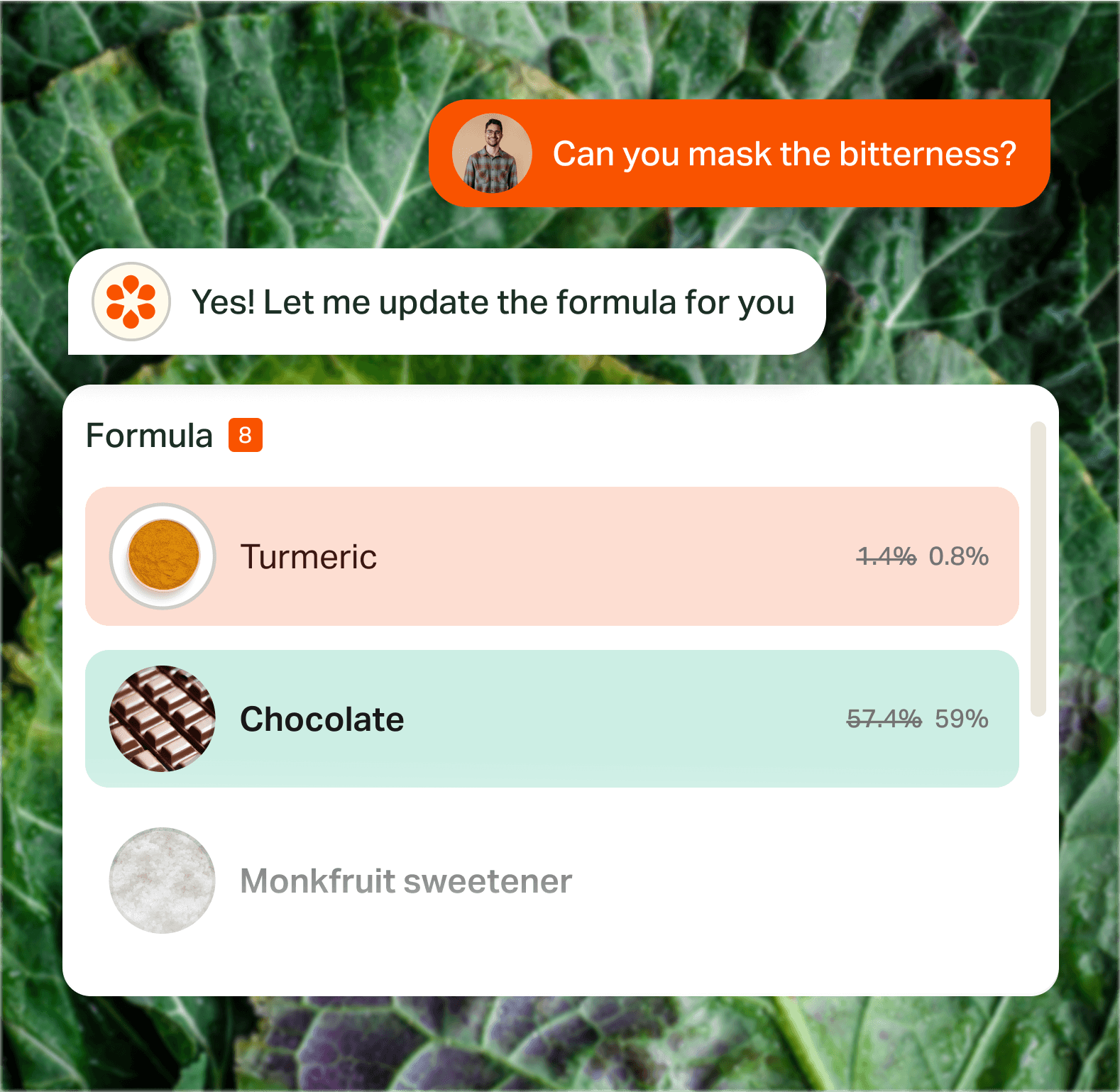 Pressure test your formula or other variables by asking Zucca questions. Be confident that its recommendations align with all of your product requirements.