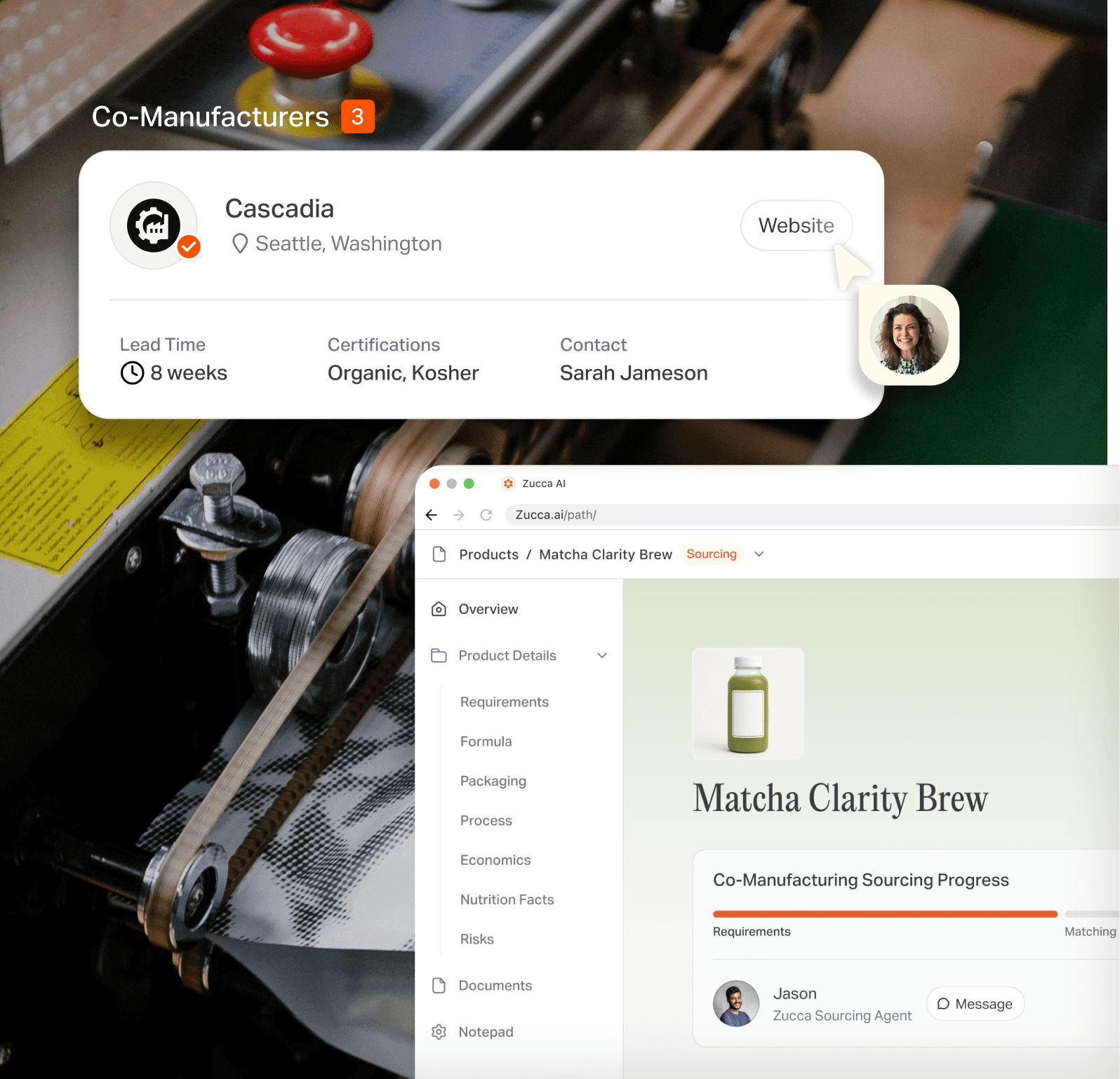 Whether you own manufacturing or not, Zucca helps you transition from benchtop to full-scale production with fewer surprises and headaches. Zucca also prepares you for launch, generating nutrition fact panels and assessing compliance risks.
